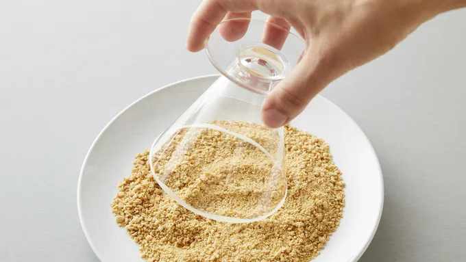 Step1Dip rim of 3-oz stemmed glass into sweetened condensed milk and then into graham cracker crumbs.