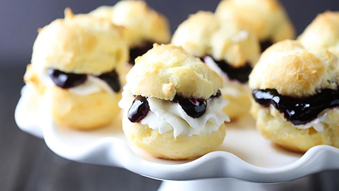 Step5Spoon a teaspoon or so of the raspberry sauce on top of the whipped cream on the puffs. Then top with the remaining puff top. Serve immediately, or refrigerate up to 2 hours.