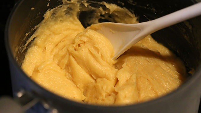 Step1Heat oven to 400°F. In 2 1/2-quart saucepan, heat water and butter to rolling boil. Stir in flour; reduce heat to low. Stir vigorously over low heat about 1 minute or until mixture forms a ball; remove from heat. Beat in eggs, all at once; continue beating until smooth.
