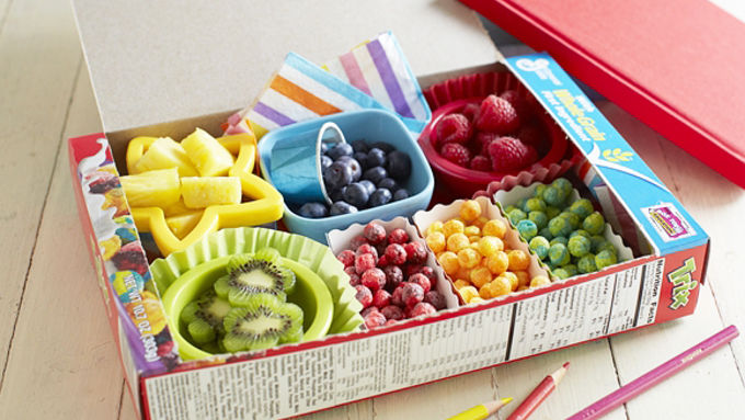 Fill this cute and portable box with favorite breakfast picks of all colors, from Trix™ Cereal to pineapple to raspberries. It’s a DIY treat for kids of any age.
