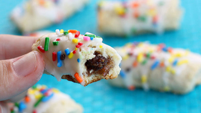 - Okay, so I’m not Italian by any means but Italian food speaks to me. I feel like somewhere down my lineage there HAS to be some Italian in me. Why else would it feel like I have family in the kitchen when pasta, tiramisu, and pizza are present? We are all familiar with the classic Italian foods but these Rainbow Cucidati, adapted from Cucidati Italian Fig Cookies, are hidden treasures in Italian cuisine. To be honest, I had never heard of them; when I did a quick Google search I found that these are very traditional Italian fig cookies. These cookies are filled with a fig, date, honey, and walnut filling. Bleh. Ya, I wasn’t really sold on the fig filling either even as I was making these. But it was great! The cookie base isn’t too sweet so the filling gives it just the right amount of sweetness. Plus, the cookies are drizzled with white icing and topped with a ton of sprinkles. Rich fig filling and sweet icing, It makes the whole cookie!