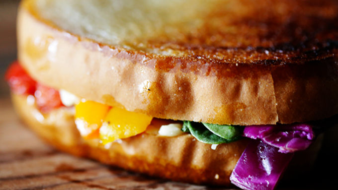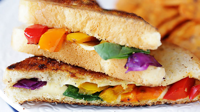 - If you thought rainbows were just pretty to look at, wait'll you taste a rainbow -- in this fresh veggie Rainbow Grilled Cheese sandwich! Say cheeeeeese! Today we are taking a classic grilled cheese sandwich and giving it a little makeover with some fresh veggies and COLOR! That’s right. We’re going beyond the standard bread, butter and cheese sandwich to add in some extra healthy veggies that will make this grilled cheese all the more flavorful, and with the rainbow veggies, it’s also way more fun to eat! Admire your rainbow then serve with some Food Should Taste Good veggie chips. Delish!
