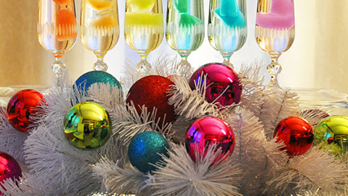 - But best of all is the big bowl of colorful cubes just waiting for your guests to pluck the colors they want. These are fun served with light-colored beverages like Sprite, club soda, sparkling water, sparkling white grape juice, or even champagne. If you're serving kids, they probably won't mind their colors melting together in a muddy mix in their soda, but your adult guests may wish to stick to a single color per glass! You can keep the colors simple or you can get creative by mixing colors, too -- there's a guide on the back of the food coloring box so you can make all kinds of crazy hues to match any special event! Mix your trays, or keep them all one color. It doesn't matter. Is this the most flex party idea, or what? Make a dozen or make a million -- it's just water and food color, so you can go color crazy for practically FREE! Then thank Mother Nature for the inspiration. Go ahead -- make these for your holiday party and have a ball!