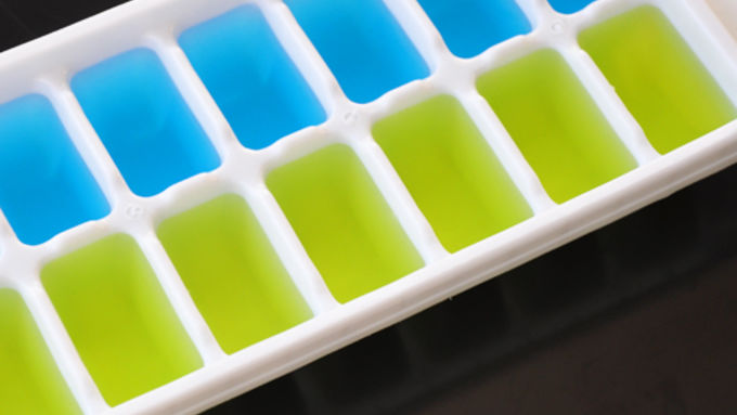 Step2Pour colored water into compartments of an ice cube tray and freeze solid, about 2 hours or more.