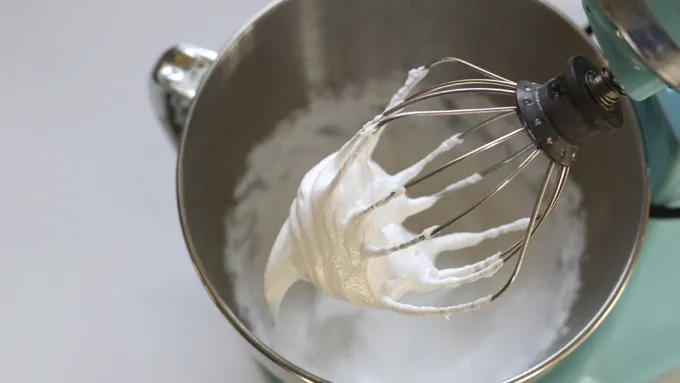 Step2Place egg whites in bowl of a standing mixer fitted with the wire whip, or in a large bowl if you're using an electric hand mixer. Add cream of tartar and almond or peppermint extract. Whip at high speed until the egg whites turn to fluffy snow. This may take a few minutes. Gradually add sugar while mixing on medium speed. Then whip on high speed for a bit. The mixture looks much the same as the egg white snow, but it will be shinier.