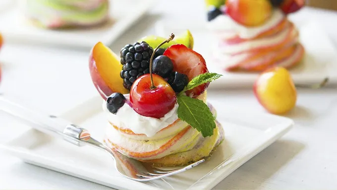 - This beautiful birthday cake by Fork to Belly inspired me to make this pink velvet cake with rainbow meringues. I’ve been somewhat obsessed with meringues lately, so this idea to use them as cake toppers tapped right into that preoccupation. Plus, rainbow. Plus, pink velvet cake. So the whole combination is like riding a unicorn. “Pink velvet cake” is a bit of a diversion from traditional red velvet cake. Red velvet cake dates to the 18th century when bakers added cornstarch and cocoa powder to cakes to make a finer textured cake. Red velvet cake contains vinegar and buttermilk to bring out the “red” in the cocoa powder. (The reason red food coloring is added, by the way, is thanks to Texan John A. Adams, owner of the Adams Extract Company, who wanted to sell more food coloring. During the Great Depression era, his company offered recipes with their products, including a red cake.) Some believe the increased popularity of red velvet cake in the States in the last couple decades is thanks to the groom’s armadillo cake in Steel Magnolias. Admittedly, I remember that cake well, and it’s the first I ever heard of red velvet, so I’m a believer. While cousin to red velvet, “Pink velvet cake” is more akin to “white velvet cake,” which is light and buttery. And of course, it doesn’t contain the signature cocoa powder. So here, I’m turning cake mix into a combination of all the velvets to create a smooth, rich cake. Really, it’s pretty much cake dyed pink. Before we make the cake, let’s take care of the rainbow meringue toppers, which can be made the day before. As beautiful as they are, they are surprisingly easy to make. Here, I halve the recipe I used for the melting snowman meringue cookies, since we don’t need that many meringues. And there will still be plenty of extra for you to enjoy. To make the cake, preheat the oven and follow the instructions on the box of Betty Crocker cake mix, but substitute buttermilk for the water. Choosing the White Cake mix would be closer to true white velvet and would make a prettier pink, but I prefer yellow cake, so I’m using the Betty Crocker™ Super Moist™ Yellow Cake Mix. Mix the cake mix, cup of buttermilk, half cup of vegetable oil and three eggs according to the directions. Stir in a few drops of pink gel paste food coloring, adding more drops as needed until you reach the desired shade. Pour into your greased and floured baking pans and bake according to the package directions. Here, I used three six-inch pans because I wanted a tall cake. But the standard pair of nine-inch pans would work beautifully. Let the cakes cool. Frost the cakes with vanilla Betty Crocker frosting. Top with your rainbow meringues. Go share with unicorns. If you're not into pink cake, feel free to add your pretty rainbow meringues to any cake or dessert you want!