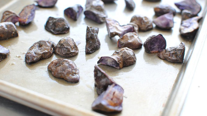 Step2Toss the potatoes with the tablespoon oil and arrange on a baking sheet. Season with salt and pepper and roast for 20 minutes.