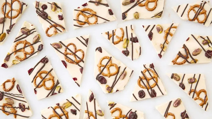 Step4Let coating harden or speed it up by putting it in the fridge. Cut or break the bark into pieces and serve.