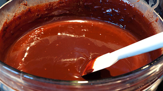 Step6Remove from heat and allow ganache to cool on countertop for 20 minutes. Consistency should be pourable, but not runny.