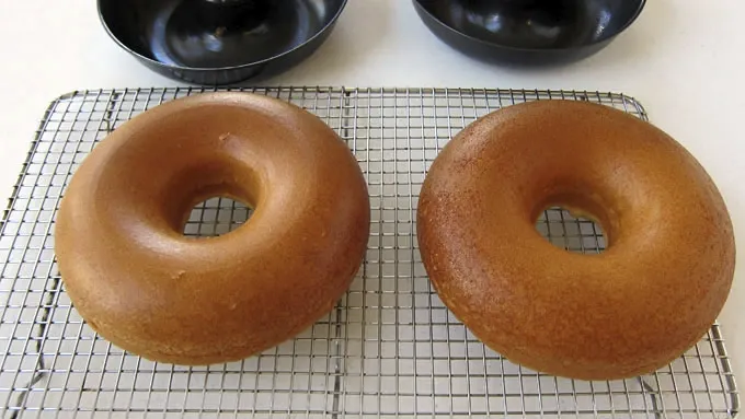 Step1Preheat oven to 325° F for a dark coated pan or 350° F for a metal pan. Spray a two-piece donut cake pan with baking spray.