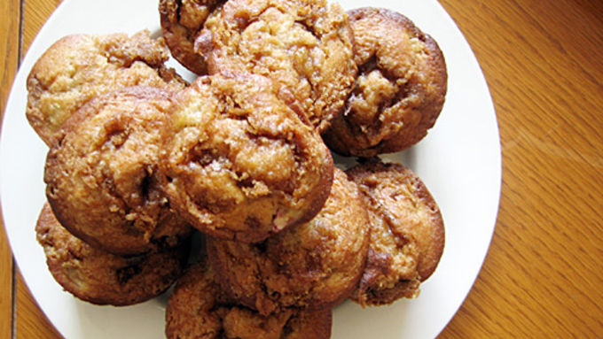 Yummy, sweet muffins made with tart rhubarb -- perfect for spring and early summer breakfasts.