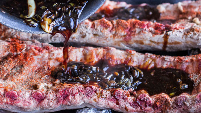 - Ribs with sticky caramelized sauce make you glad you have fingers to lick! Grilling season is finally here! And I'm kicking things off with some killer Asian-flavored ribs. Oh man, are you going to be psyched once you try these. I know that BBQ ribs are highly traditional and greatly loved, but I see nothing wrong with switching things up every once and a while. I was thinking how good caramelized Pork Banh Mi Sandwiches are and wondered how that caramelized sauce would be on ribs. I decided to look further into it. I wrote down a recipe in my little notebook and then made some ribs. The first thing you are going to notice when you make these is the smell – it’s so good! Once you see that scrumptious caramel sauce slathered on these ribs, it’s all over. That’s when it really hits you – these are going to be irresistible. Serve with extra caramelized sauce and devour!