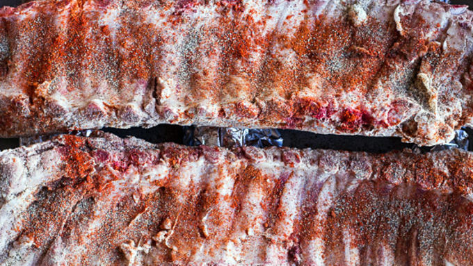 Step1Preheat the oven to 350°F. Combine the cayenne, paprika, Chinese five spice and pepper in a small bowl. Rub the mixture all over the ribs and place the ribs meat side down in deep baking sheet or roasting pan. Sometimes I like to use foil to prop the ribs up so they steam better.