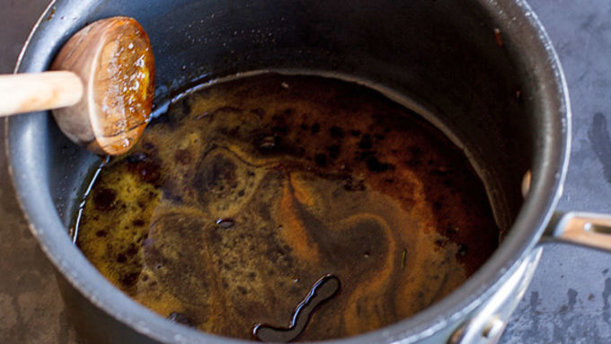 Step4Return the pot to medium-low heat and simmer until the caramel has melted. Once the caramel has melted add the garlic and dijon mustard. Simmer the sauce for 5 or so minutes longer or until it has reduced slightly.