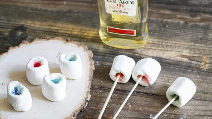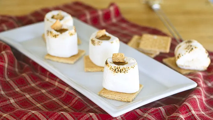 - Chocolatey s'mores jelly shots poured into a whole jumbo marshmallow make for a perfect party treat. I don’t know about you, but I am in complete and utter denial that summer is winding to a close. I refuse to accept it, and therefore present to you these delightful jelly shots that have summer written all over them. Toasted marshmallows, creamy chocolate, and crunchy graham crackers. All ingredients for the perfect s’more, and therefore ingredients for the perfect s’mores jelly shot. These shots are awesome because the entire thing is edible. Just pop the entire marshmallow in your mouth. No plastic cups to contend with, no cleanup, just delicious jelly shots in your belly. I used my strawberry huller to hollow out the marshmallows, but your fingers will work too. Just be sure to coat them in non-stick cooking spray and add more as needed. No matter what you do, your fingers will be an ooey-gooey-marshmallowy mess when you’re finished, but this little trick will cut down on the mess. I went with almond milk because that’s what I had, but you could use coconut milk or even regular milk if you like. Enjoy your boozy s’mores and soak up that last bit of summer!!