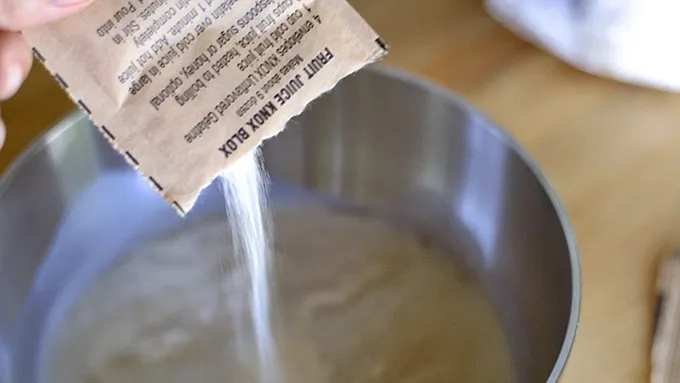 Step2Pour milk into a small saucepan and sprinkle with unflavored gelatin. Allow it to sit ("bloom") for a couple minutes. Heat on medium-low, stirring constantly until gelatin dissolves, taking care not to scorch the milk.