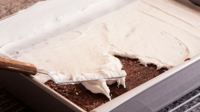 Step1Frost the brownies with about half of a 16 oz. tub of white frosting. Get the frosting as smooth as possible. Reserve the rest of the frosting - you'll need it to stick the stars on.