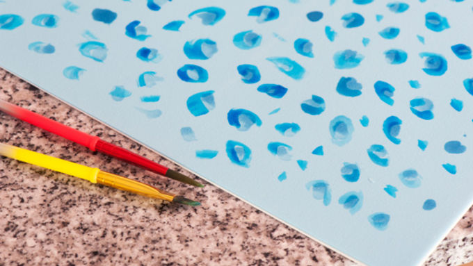 Step6With a paintbrush, dot irregularly with one of the blue tones on the blue sugar sheet. With a smaller paintbrush, partially outline the dots. Add a few random dots here and there to complete the leopard effect.