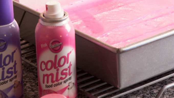 Step2Spray the entire top with hot pink edible cake decorating spray.