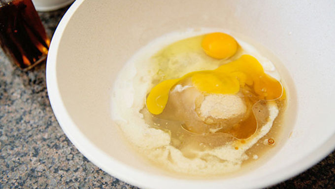 Step1Preheat oven to 350°F. Spray a loaf pan with cooking spray. Add eggs, sugar, oil, buttermilk, and vanilla to a large bowl. Whisk until combined.