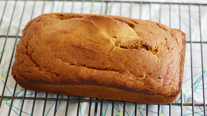 Step5Bake 1 hour until a toothpick inserted in the center comes out clean. Let cool 10 minutes in loaf pan, then transfer loaf to a cooling rack to cool completely.