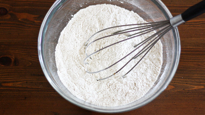 Step2In a large bowl, whisk together flour, cinnamon, pumpkin pie spice, baking powder, baking soda and salt.