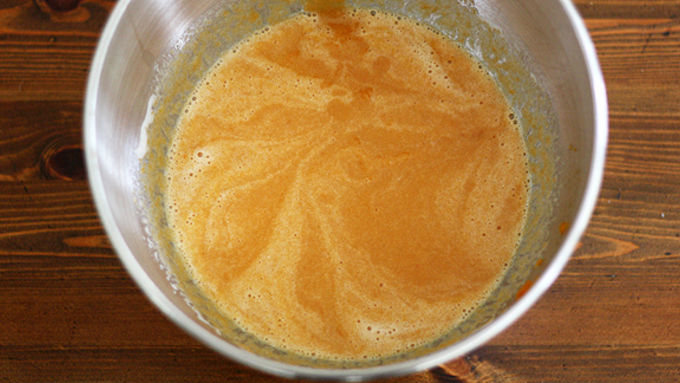 Step3In a separate bowl, beat eggs and sugars until well combined. Add milk, oil and vanilla; stir to combine. Stir in canned pumpkin.