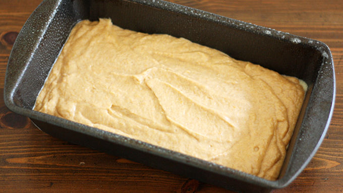 Step4Gradually add flour mixture to pumpkin mixture, stirring to combine. Pour batter into prepared loaf pan.