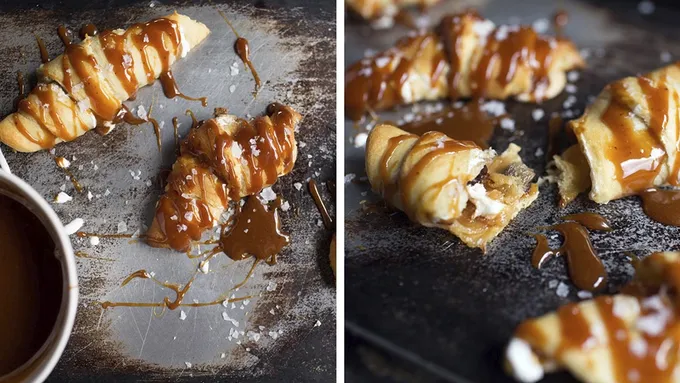 Pillsbury™ refrigerated sugar cookie dough is quickly transformed into gorgeous red velvet cookies stuffed with caramel and topped with a salted chocolate drizzle topping.