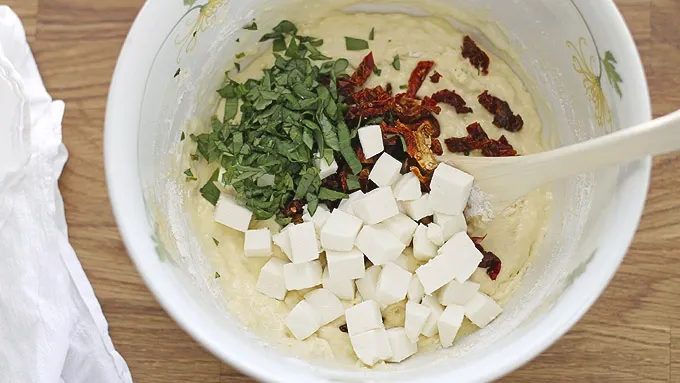 Gently stir in cubed mozzarella, sun-dried tomatoes and fresh basil.