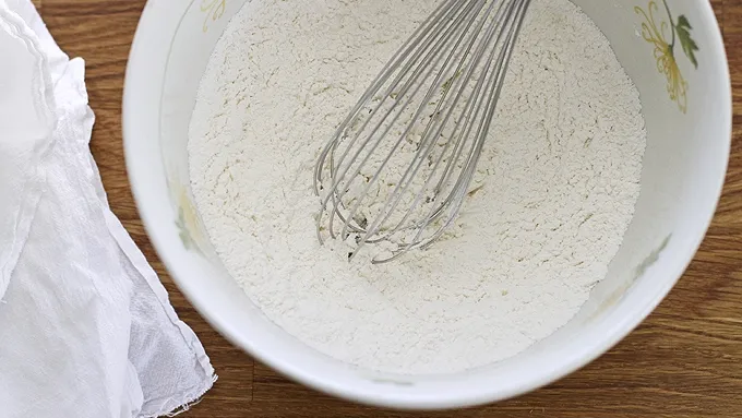 In a large bowl, whisk flour, baking powder, salt and baking soda.