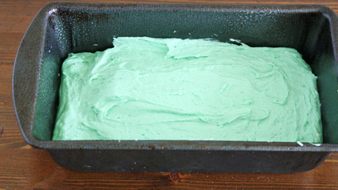 Step4In a large bowl, whisk together flour, baking powder, baking soda and salt. In a separate small bowl, whisk together buttermilk, peppermint extract and about 20 drops green food coloring. Alternately add flour and buttermilk mixtures to the butter mixture, beginning and ending with the flour, until all ingredients are just combined.