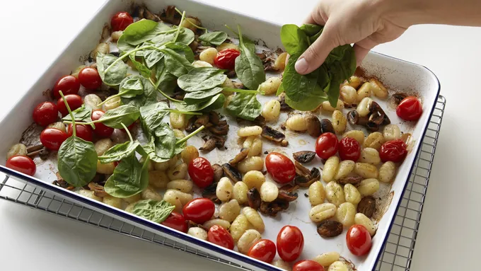 Sheet-Pan Gnocchi, Mushroom and Spinach Dinner