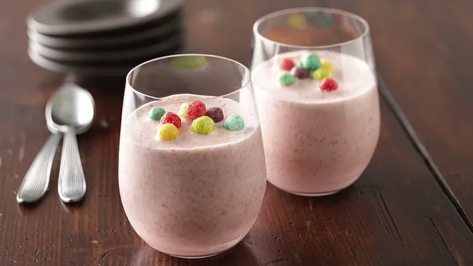Step2Pour into 2 glasses. If desired, top with whipped cream and additional cereal.