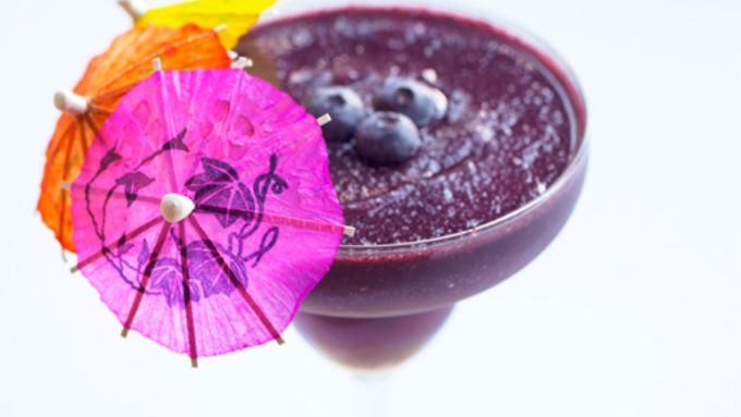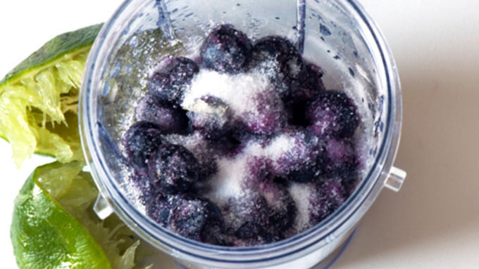 - The holidays are over. Wasn’t it grand? The cookies, the cakes, the candies, the pies, the cheese plates, the potato puffs, the champagne for toasting, the shopping fueled fast food binges – oh yes, I can (and did) go on. And yes - it was all that and a bag of (literal) chips . . . and here I am, at the same spot as every January – craving something a bit greener, and leaner so I can get back into my skinny jeans minus the muffin top (or shall we call it a cookie top?). Even though everyone is striving for all things healthier, a little fun must be had. The solution? Surprisingly, the daiquiri. A Skinny Blueberry Daiquiri to be exact. How, you say? Well, first off, fruit. Who can argue with fruit? Then a few packets of stevia (or your lo-cal sweetener of choice) in place of the simple syrup. And. It. Still. Tastes. Delicious. I used blueberries to make this skinny daiquiri because they’re sweet and delicious, and also full of antioxidants. But I can’t think of a fruit that wouldn’t be fabulous blended up with a bit of rum! (And make no mistake – either fresh or frozen fruit is fine. I actually prefer frozen as then less ice is needed). You’ll also need one fresh lime, 3 packets of your favorite sweetener and white rum. And if it’s wrong that I made my Skinny Blueberry Daiquiri in the protein shake mixer I got for Christmas, then I don’t want to be right!