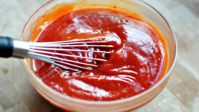 Step4Meanwhile in a bowl, combine the ketchup, water, vinegar, sugar, mustard, salt, pepper and paprika. Whisk until blended and smooth.