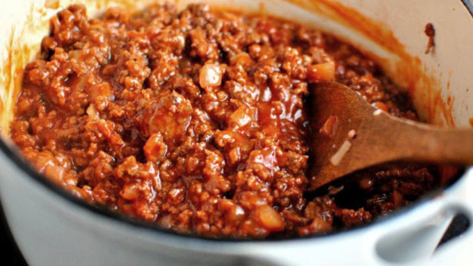 Step5Once the ground beef is fully cooked, drain off the fat with a spoon and then pour in the ketchup mixture. Stir and bring the sauce to a simmer, reduce to low, cover and cook for 20 minutes, stirring occasionally.