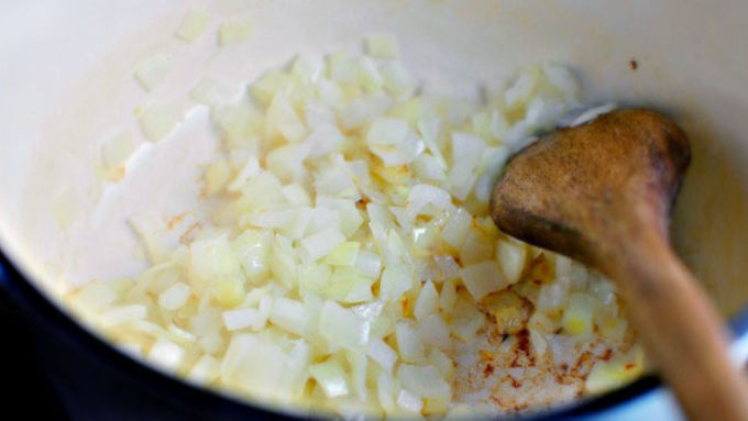 Step2Saute the diced onion for 5 to 8 minutes until soft and translucent.