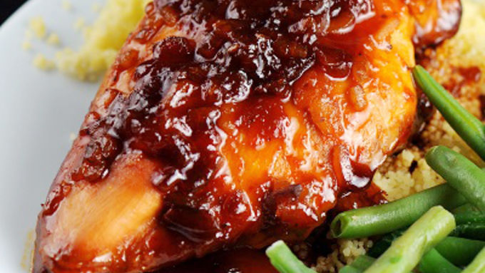 - Super easy chicken dinner made with apricot fruit spread and your slow cooker! In junior high, I took home economics. We put out a cookbook to make money for the class. This recipe (oven version) was in that cookbook, and it was the first meal I ever cooked for my parents. I thought it'd be fun to turn my first official cooked meal into Slow-Cooker Apricot-Glazed Chicken. If you want to make the full meal I made for my parents it included root beer floats and grasshopper pie. A great combo! I really haven’t met anyone who doesn’t love this recipe. And what is even better is it’s just 4 ingredients: chicken, Russian dressing, Cascadian Farm Apricot Spread, and dry onion soup mix. We make this at least twice a month in our family dinner rotation. We serve it over couscous (you can do rice as well) and some Green Giant Steamers green beans. If you don't have a slow cooker, no worries -- you can bake the chicken in a 9x13-inch baking dish instead at 350ºF for 35-40 minutes. Pour extra sauce over the chicken and rice or couscous, and get ready to feast!