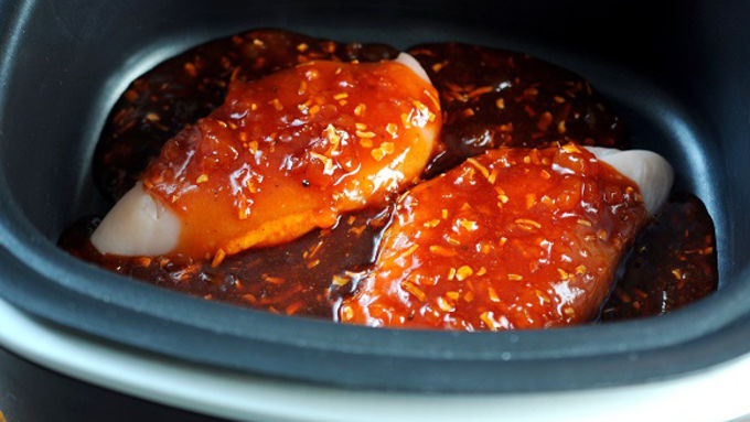 Step2Place chicken in bottom of slow cooker. Pour apricot mixture over chicken.