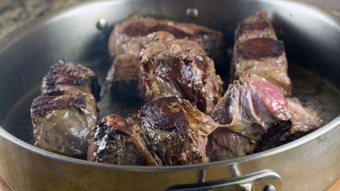 Step2Season roast pieces well with kosher salt. In a large skillet, add olive oil and heat over high heat. Once hot, add roast pieces and brown well on all sides, about 3-4 minutes per side.