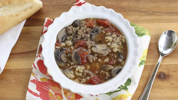 Put your slow cooker to work for a delicious soup full of rich beef and mushroom flavor.
