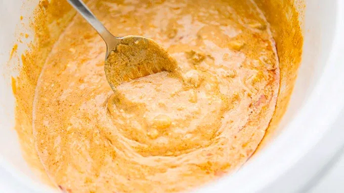 Creamy slow-cooker enchilada chicken queso, served on top of corn chips and topped with your favorite taco toppings. This easy dish is ideal for summertime cookouts when you don’t wanna grill. And even better for serving up a crowd with minimal effort.