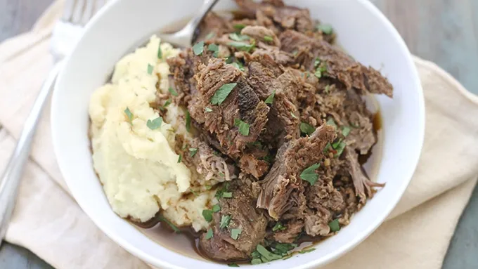Step4Return meat to slow cooker with sauce. Serve with sauce over mashed potatoes and sprinkled with chopped fresh parsley, if desired.