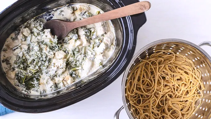 Slow-Cooker Kale and Chicken Fettuccine Alfredo