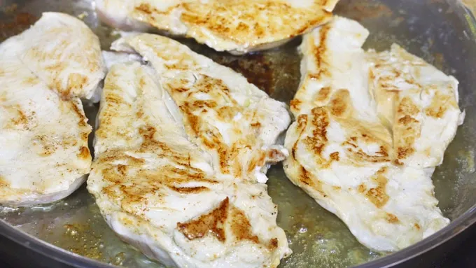 Step2Heat the butter in a skillet over medium-high heat; add the chicken breasts and fry on both sides until browned.