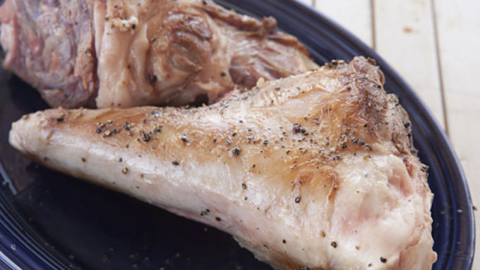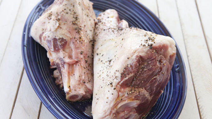 Step1If your lamb shanks have a tough silver skin on the outer parts, use a paring knife to cut it off. Then drizzle lamb with olive oil and season well with salt and pepper.
