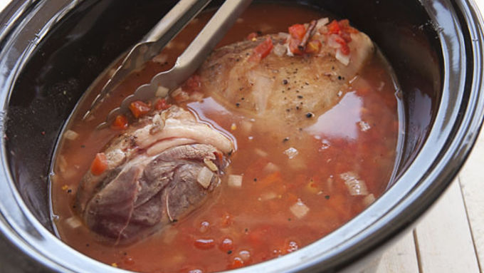 Step5Transfer lamb shanks, tomato mixture, and water to a slow cooker. Cook on high heat for 2-3 hours or low heat for 5-6 hours.