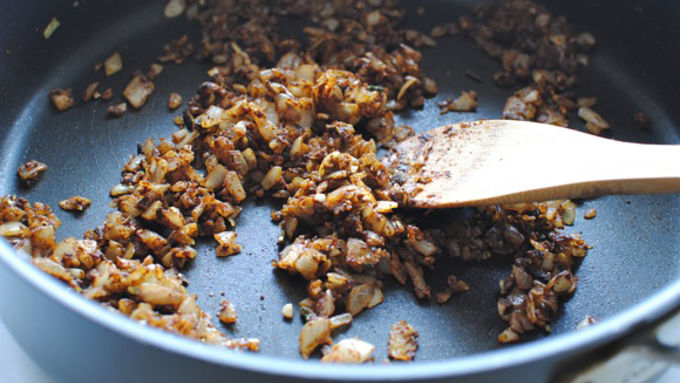 Step2Back in the pan, add the onions; sauté until they start to soften, 5 minutes. Add the garlic, cumin and chili powder, and sauté another minute.
