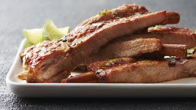 These falling-off-the-bone tender ribs are slow-cooked with a fabulous, rich BBQ tomato sauce.